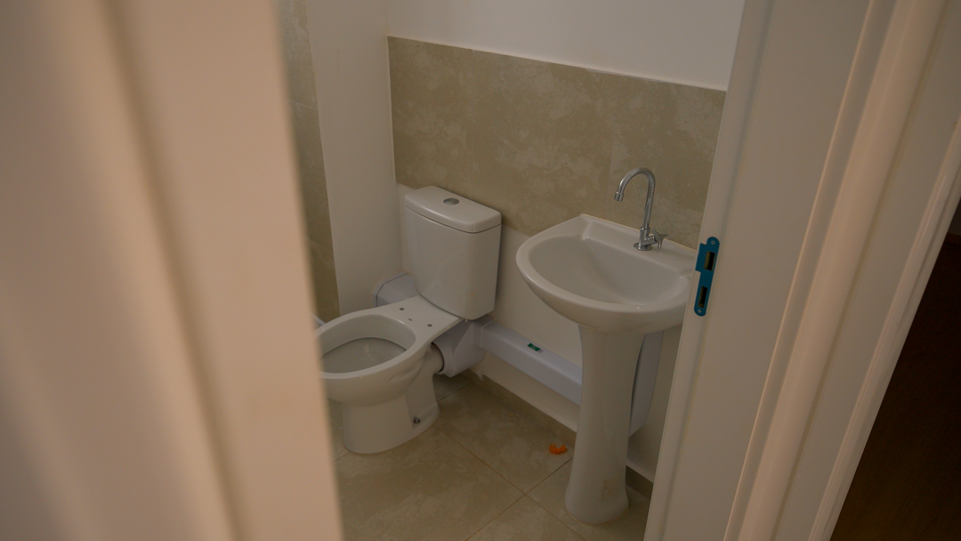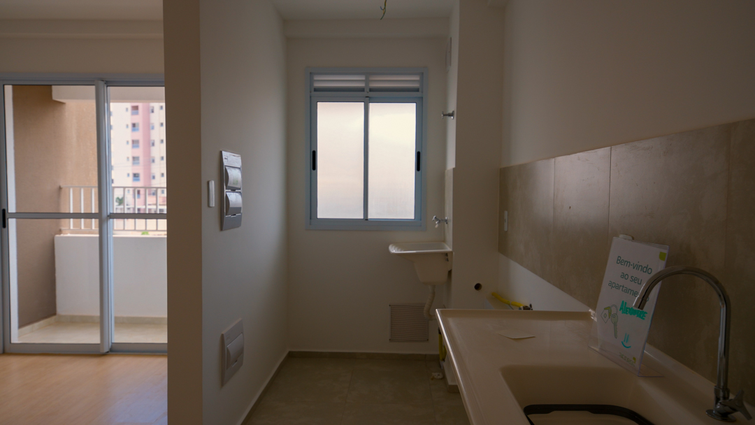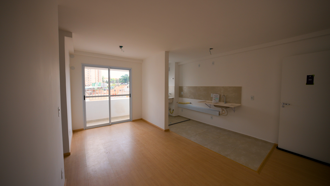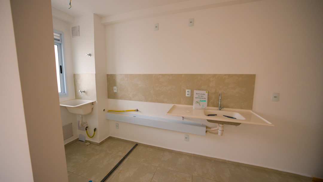 Os apartamentos serão entregues com piso laminado na sala e nos quartos, piso cerâmico nas áreas molhadas (cozinha e banheiro), e acessórios em metal.